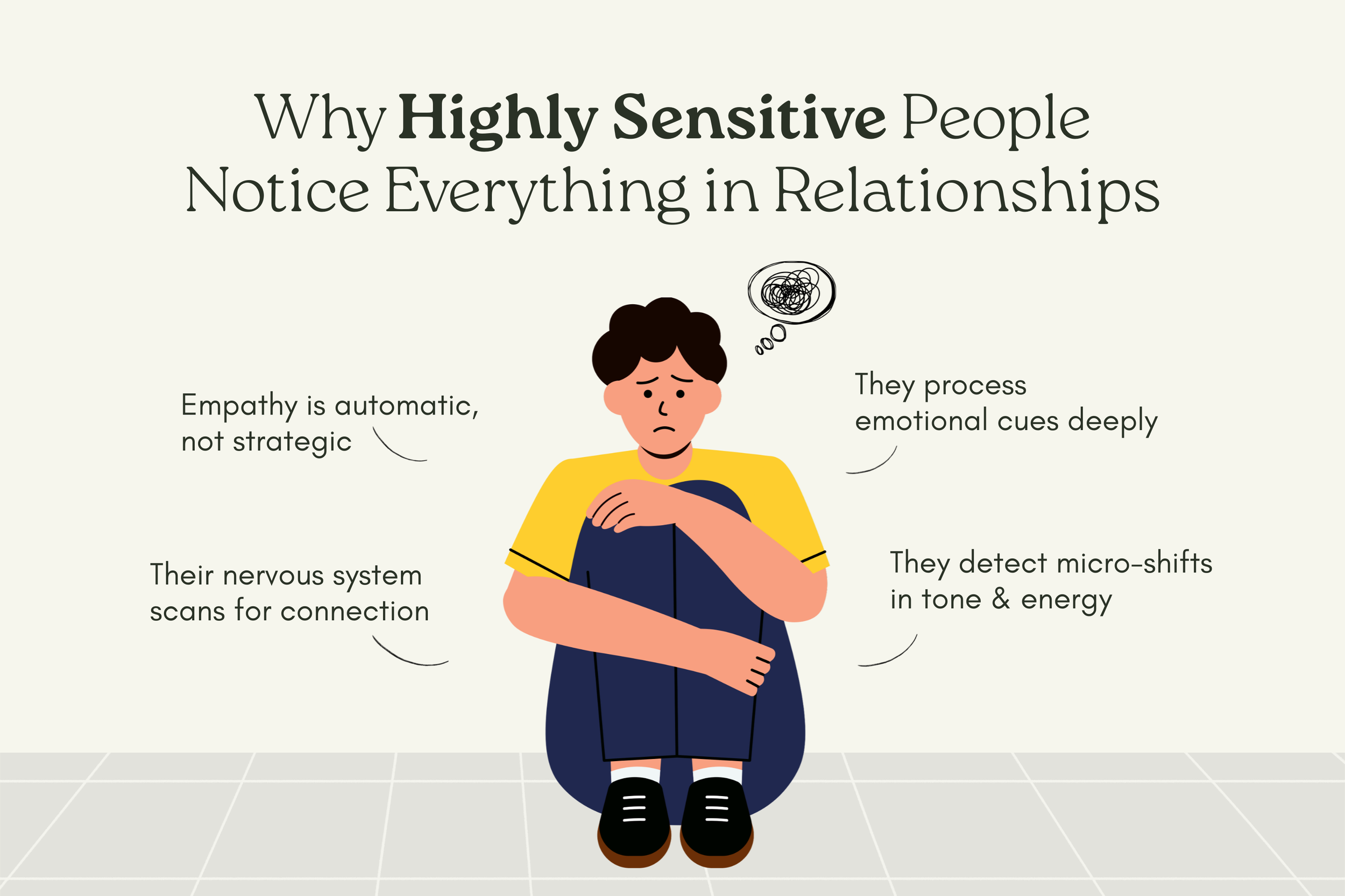 Highly sensitive people are deeply attuned to shifts in people’s vibrations or emotional expression, which means they sometimes overthink small changes in behavior. When communication patterns change, if a routine is somehow disrupted, or a response feels slightly off their nervous system notices.