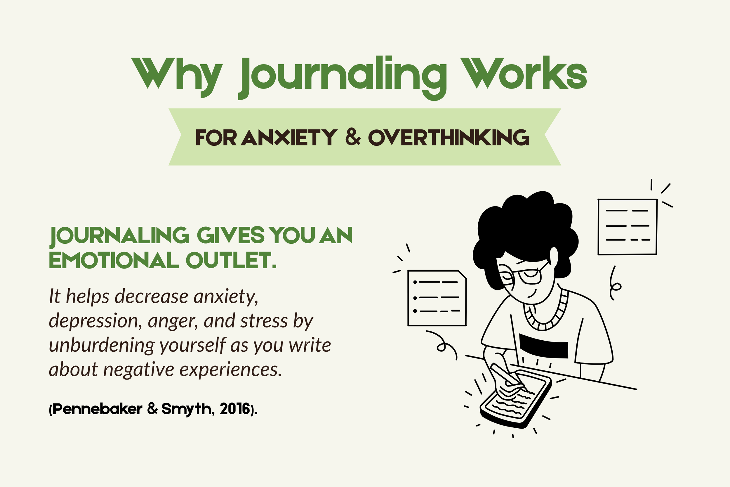 Journaling gives you an emotional outlet. It helps decrease anxiety, depression, anger, and stress by unburdening yourself as you write about negative experiences (Pennebaker & Smyth, 2016).